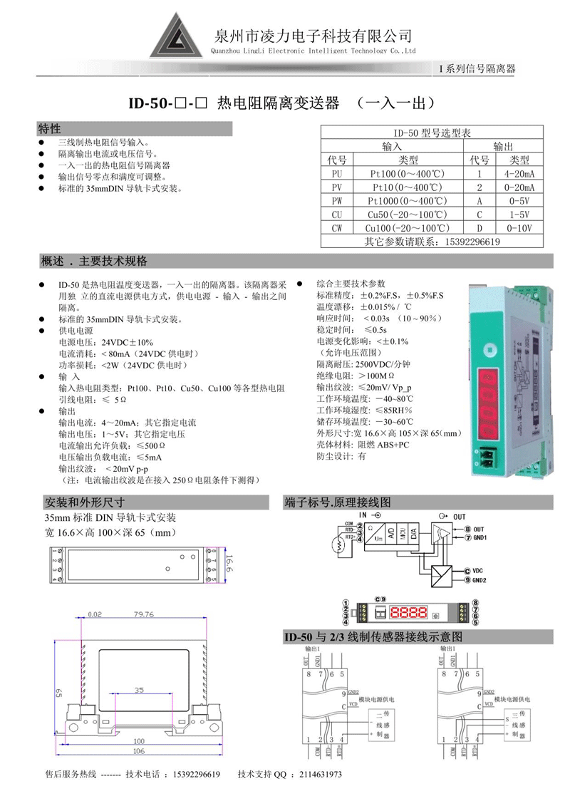 ID-50 熱電阻溫度隔離變送器(一入一出)