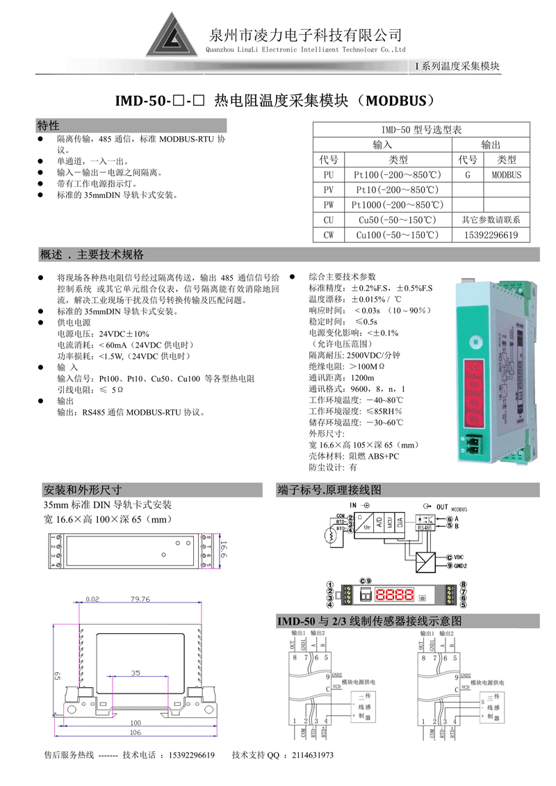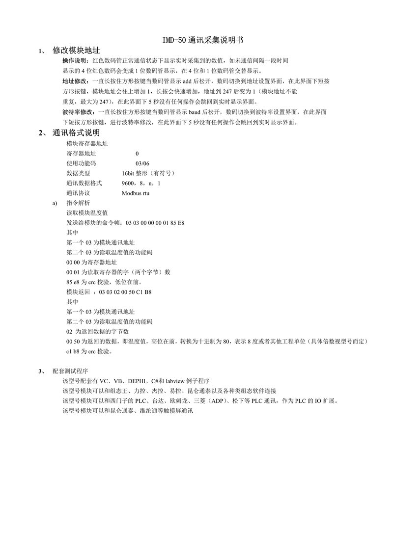 IMD-50 熱電阻溫度采集模塊(MODBUS通信)